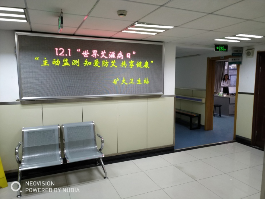 我们在校医院宣传栏张贴了防艾海报,校医院电子屏打出防艾宣传口号,站内宣传园地摆放艾滋病宣传资料。