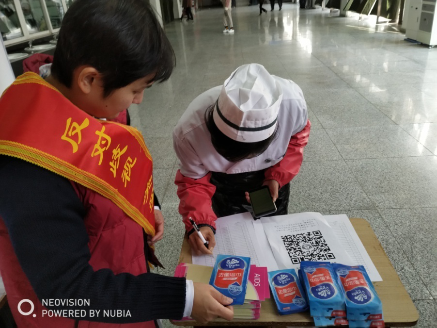 11月30日,中午11点,扫码有奖答题活动准时开始。我们为同学们准备了精美小礼品,指导同学们关注海淀疾控官方公众号,并进行艾滋病知识问题。活动现场十分热烈,收到了在校师生、教职工的欢迎和支持,短短2小时的活动,共计发放礼品500余份,宣传覆盖10000余人。活动也得到了矿大居委会的支持与参与。